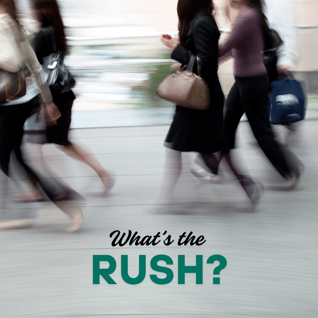 Early on, I could tell that not everyone had reached this conclusion. Everywhere I look, people are making quick decisions and walking with a level of urgency that I think, at best, is unnecessary, and at worst, is dangerous. But I hold no judgment. Heck, I know how hard it is to keep rest a priority. As a former practicing attorney, I struggled significantly with self-care and rest. Eventually, I learned that if I wanted to stay at rest in the midst of stress, I had to play smarter. I had to look at those things in my life that consistently shifted my equilibrium, stealing my precious peace. One of the first enemies of rest I identified was rushing. This was something I felt, naively at times, that I could do something about.